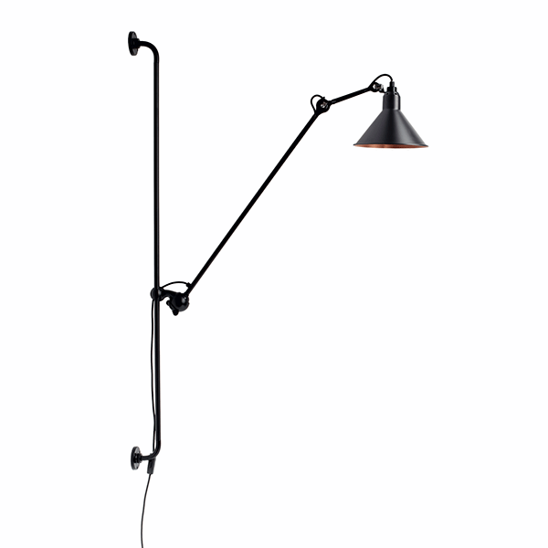 Lampe Gras N214 Væglampe i Mat Sort og Mat Sort/Kobber er et must-have for enhver moderne indretning. Designet af Bernard-Albin Gras, denne væglampe kombinerer funktionalitet med tidløst design.