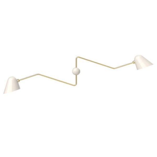 Tato Beghina Dobbelt Væglampe i Hvid og Messing er en stilfuld tilføjelse til dit hjem. Designet af Giulia e Guido Guarnier, forener denne lampe elegance med praktisk funktionalitet