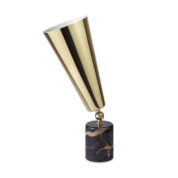 Tato Vox Bordlampe i sortbrun marmor og messing er et must-have til dit hjem. Denne lille bordlampe fra TATO, designet af Lorenza Bozzoli, kombinerer elegance med funktionalitet.